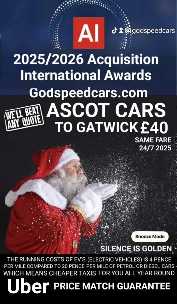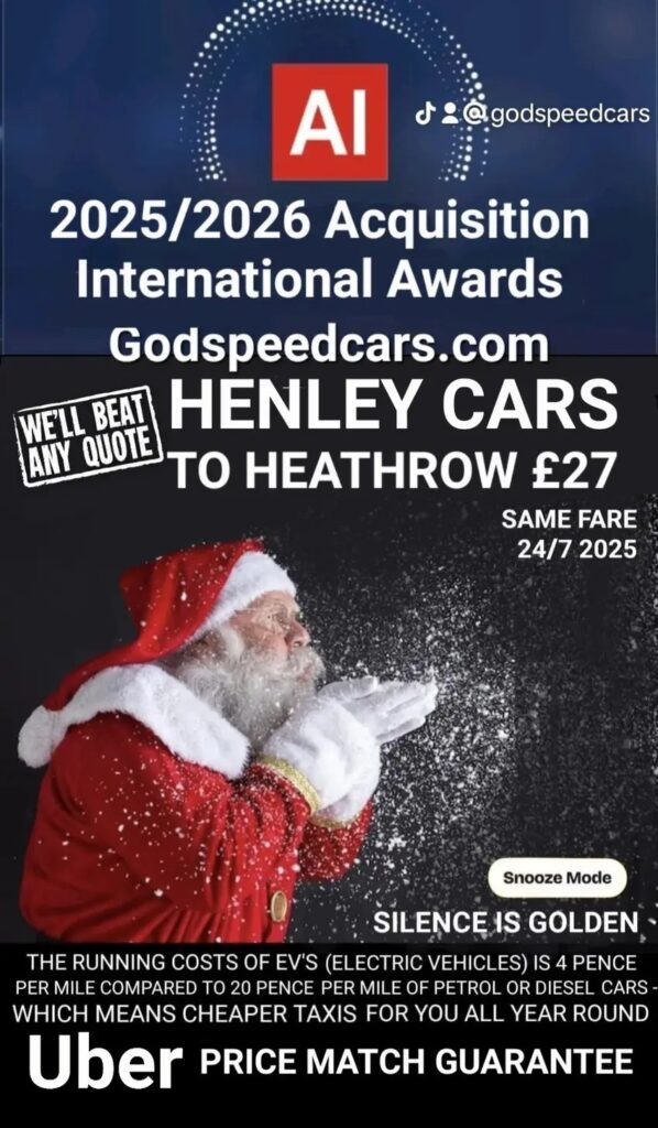 And oh.. did we mention T’is the season of Goodwill. It just wouldn’t be fair or ethical to charge extra over the festive season of Christmas. No Surge Pricing – Same prices all year round. Book online www.peerlessexecutive.com and Quote Ref: BIDDER Select ‘Snooze Mode’ – Because Sleep Matters. Life will never be same after you’ve experienced the Golden Executive treatment. Prestige Cars from Maidenhead to Gatwick £45. Our prices are competitive in line with local and regional market rates set by Uber and Bolt. And the Railair minibus/ coach service from Reading to Heathrow for £28 Return. From Loddon Cars to Heathrow £27.